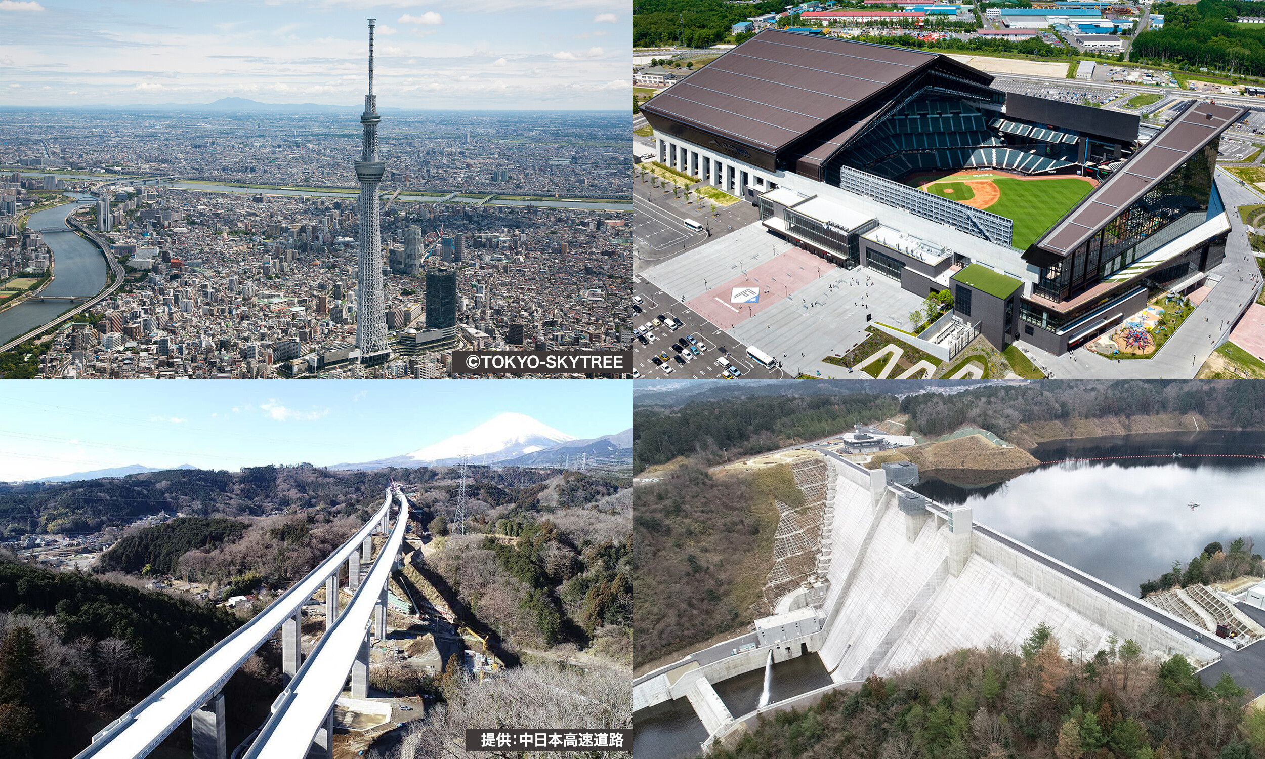 コンクリートは、住宅、病院、高速道路などの社会インフラをはじめ、東京スカイツリー®やエスコンフィールドHOKKAIDOなど、大林組を代表する大規模な構造物にも広く使用されています。