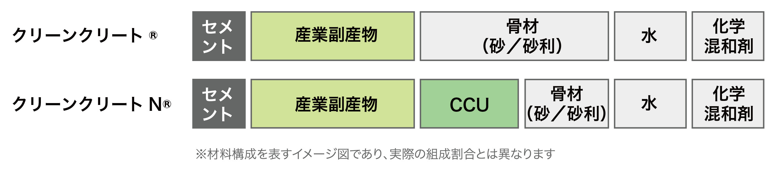 ●「クリーンクリート®」と「クリーンクリートN®」の材料構成の比較