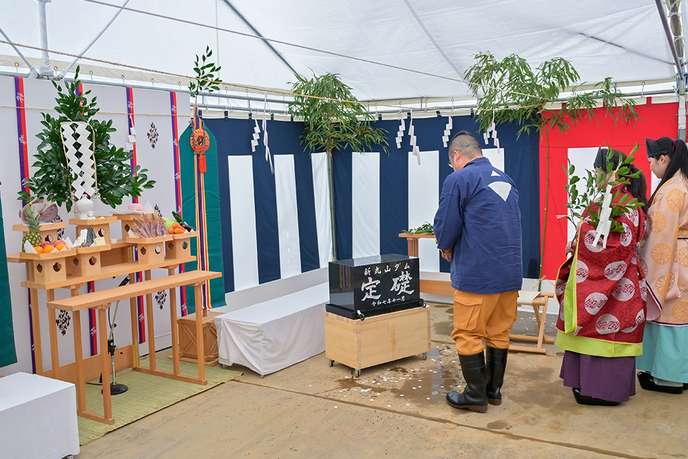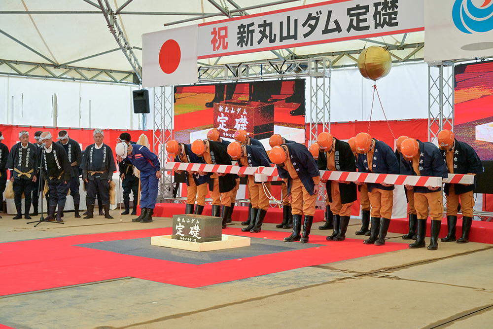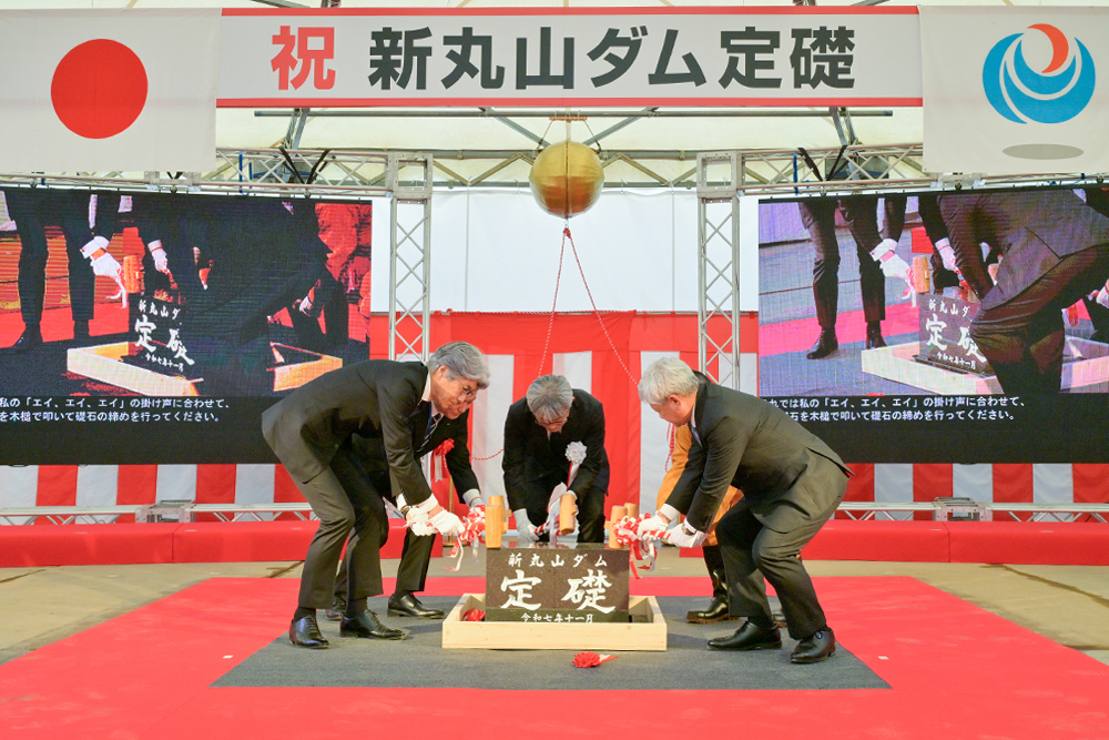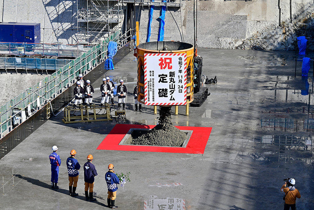 2025年11月24日(月)、新丸山ダム本体建設工事の定礎式ならびに安全祈願祭が執り行われ、ダムの永年の安泰と工事の安全が祈願されました。