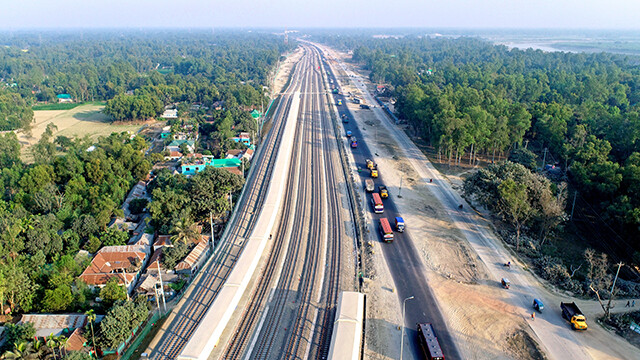 This national project constructed a dedicated railway bridge and new line section parallel to the existing combined railway/road bridge across Bangladesh's largest river, the Jamuna, to improve inter-city logistics efficiency. Obayashi was responsible for the 6.8 km East Work Zone.