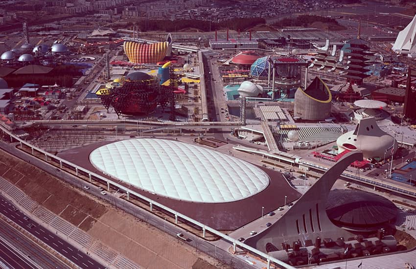 1970(昭和45)年3月から9月までの183日間にわたって大阪・千里丘陵で「人類の進歩と調和」をテーマに開催された日本万国博覧会(EXPO’70)は、77カ国の参加のもと6400万人を超える入場者が訪れたアジア初の国際博覧会でした。開催地の選定では、大阪以外にも兵庫、滋賀、千葉などの各県が手を上げましたが、市街地改造や、高速道路、地下鉄などのインフラ整備の充実を掲げ、地元を挙げて取り組んだ大阪での開催が決定しました。