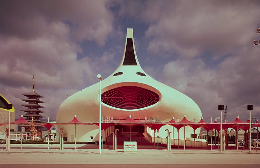アメリカ館は、当時の同方式のエアードームとしては世界最大となった、1万㎡に及ぶ巨大な空気膜構造のドームです。設計協力と施工を担当した大林組は、外国人設計者らと共に、米国建築家にとって最大の栄誉といわれるアメリカ建築学会賞を受賞しました。