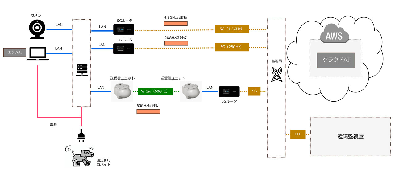 メタサーフェス反射板を用いた通信環境の安定確立およびエッジ・クラウドAI連携による通信負荷軽減を実現し、AI・ロボット活用による業務省力化・省人化を目指す