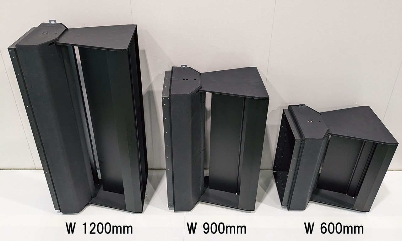 「in-DUCT」吹出口タイプは誘引機構と吹出口を一体化しており、空調ダクトの末端に設置するユニットです。ダクト中間タイプと同等の機能を持ちながら、ダクト接続も空調機への直接接続もできる製品です。また、さまざまな風量に対応できるよう、3サイズ(1,200~4,800m3/h台)をラインアップし、設置方法の選択肢を増やすことで、設置自由度が大幅に向上しました。