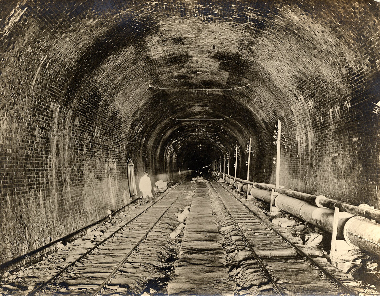 今から約120年前、1911(明治44)年に大阪電気軌道(現・近畿日本鉄道)の生駒隧道(生駒トンネル)の建設工事に着手しました。大阪と奈良の間にそびえる生駒山系に全長3,388mの複線広軌のトンネルを掘るという、他に類を見ない大工事でした。芳五郎は「大林ある以上いかなることがあっても貫徹する」と固い信念を持って、着工から約3年を経て完成。トンネルの開通により、沿線各地の交流を促し、奈良の観光地化を進めるなど関西の経済、文化の発展に寄与しました。