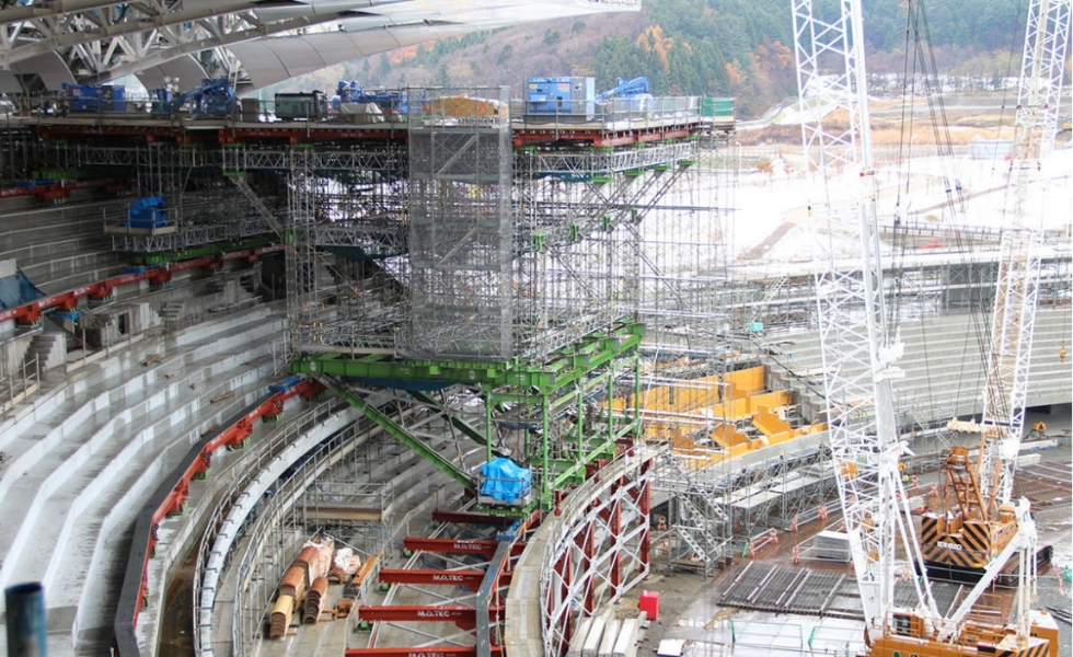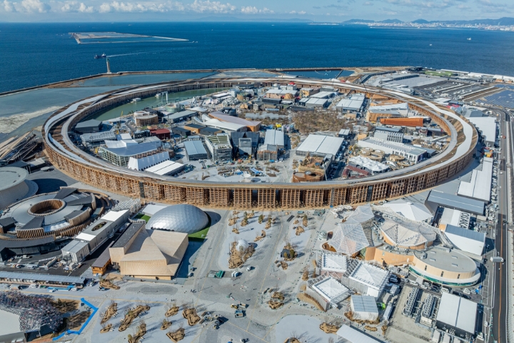 大林組を代表企業とする共同企業体は、大阪・関西万博会場全体の建設プロジェクトにおける進行や管理を行う統括施工管理者の役割を担うとともに、大屋根リング建設を担う3つの工区のうち、北東部分を担当しました。大屋根リングは周長約2kmに及ぶ世界最大級の木造建築であり、その柱と梁は、清水寺の本堂から張り出した「舞台」に見られるような伝統的な貫(ぬき)接合に現代の工法を加え、組み立てられています。