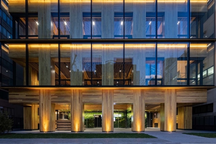 都市部の中高層耐火純木造建築モデルの先駆けとなることをめざし、日本初となる純木造11階建ての高層耐火建築物「Port Plus」を建設しました。支圧接合とGIR(Glued in Rod)工法を組み合わせた「十字形の剛接合仕口ユニット」など新技術の開発や、サーキュラーエコノミーも視野に入れた木質構造をめぐる社会システムのデザインにも取り組みました。