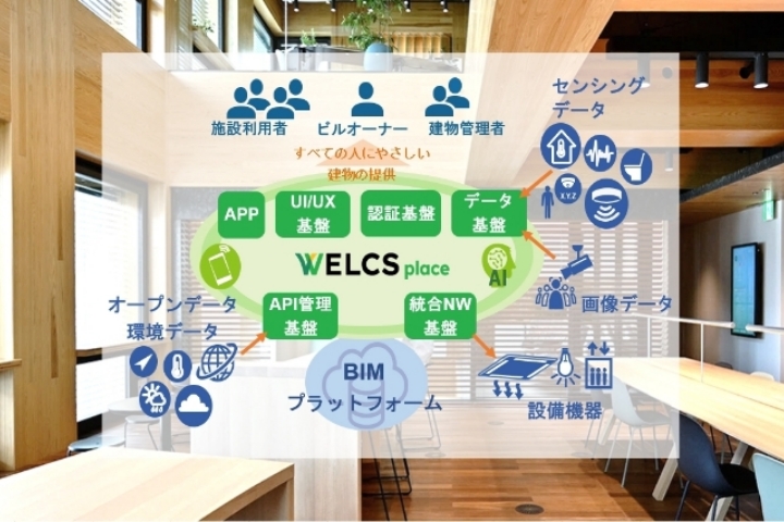 情報分野で開発したWELCS place®はスマートビル向けの複数アプリを同一インターフェース上で一元的に管理できるスマートビルプラットフォームです。国内外の複数企業との協働により開発しました。