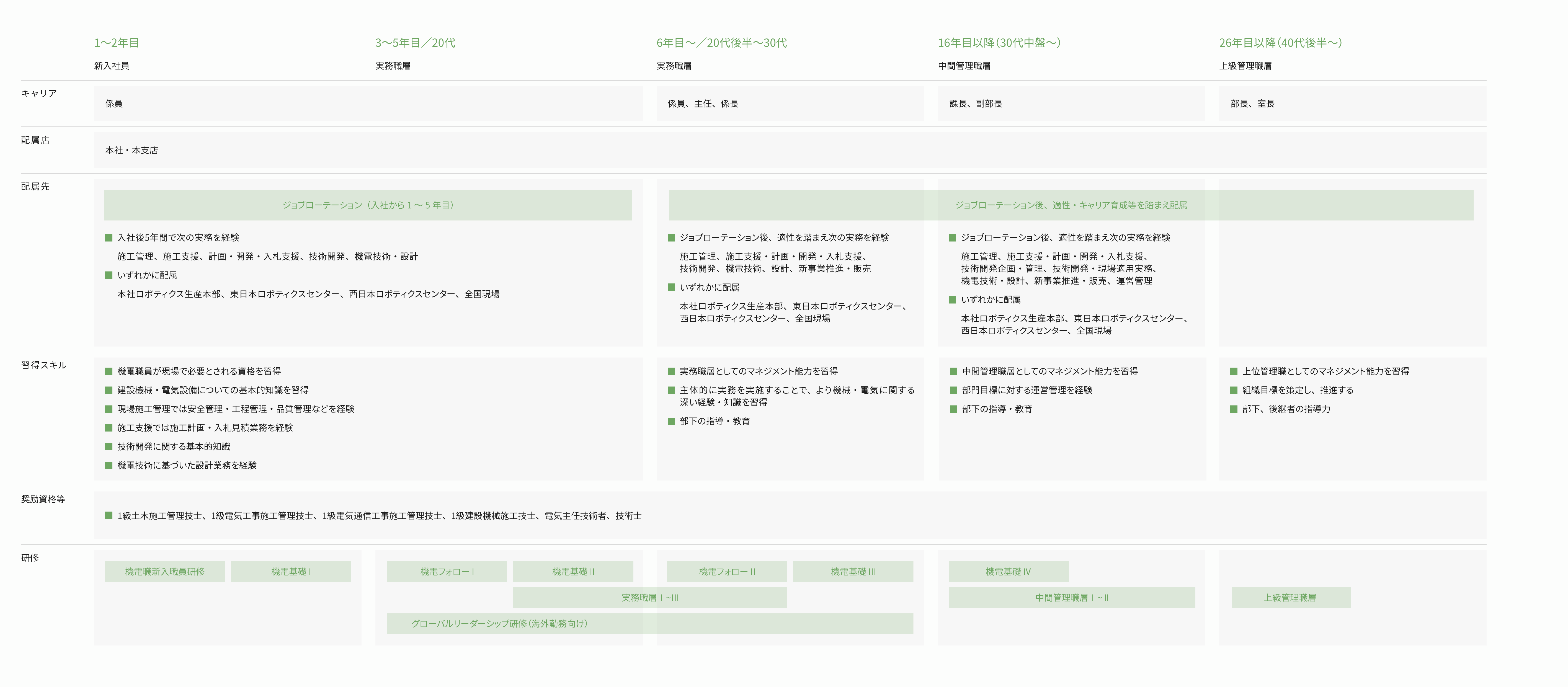 機電職の社員数は、大林組の全従業員数の約5%と少ないため、高い能力が求められますが、その分、若い時から大きな仕事を任される機会があります。若手社員がさまざまな仕事をこなせるようになり、プロジェクトのリーダーとなるチャンスも多くあります。