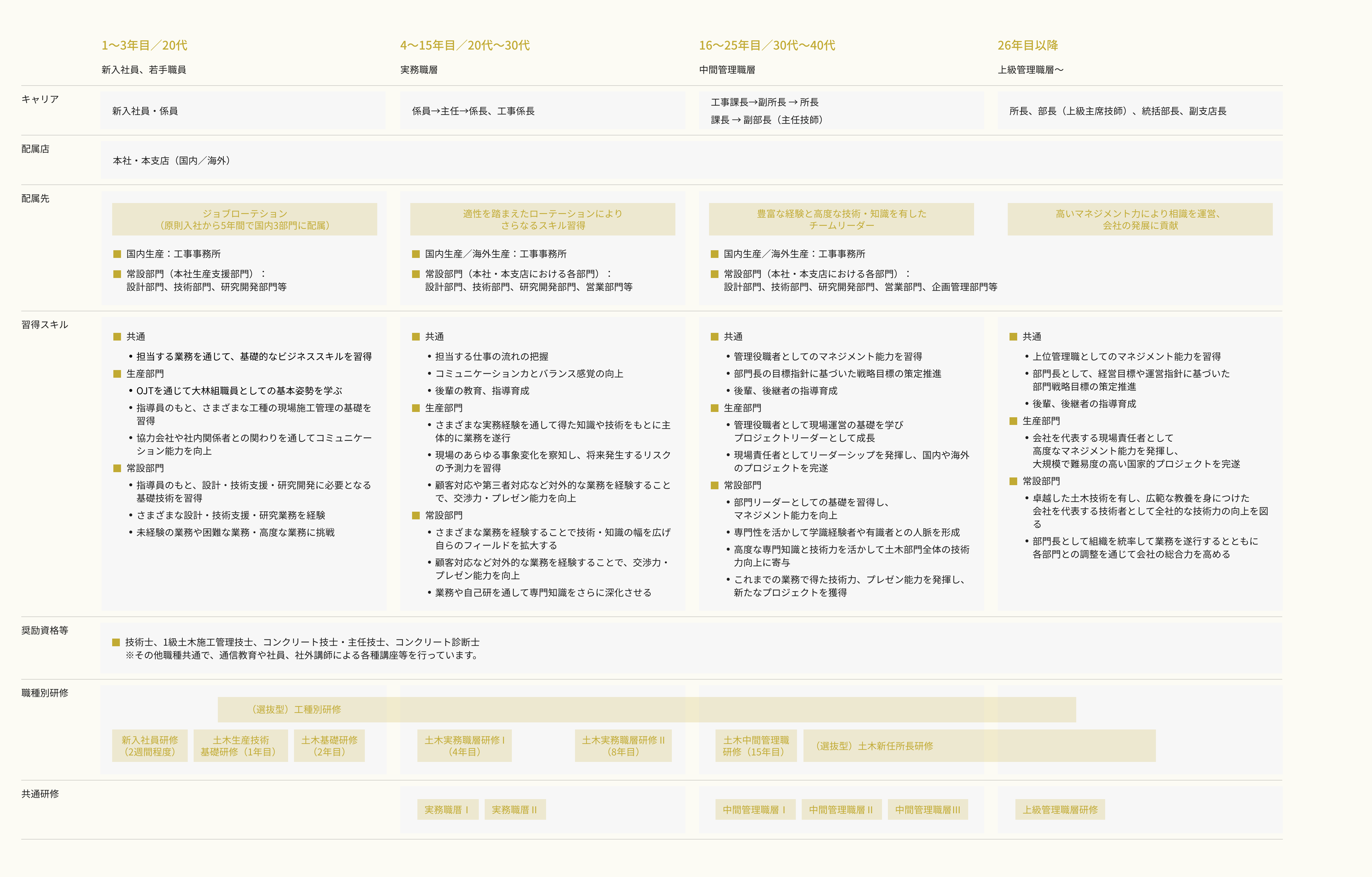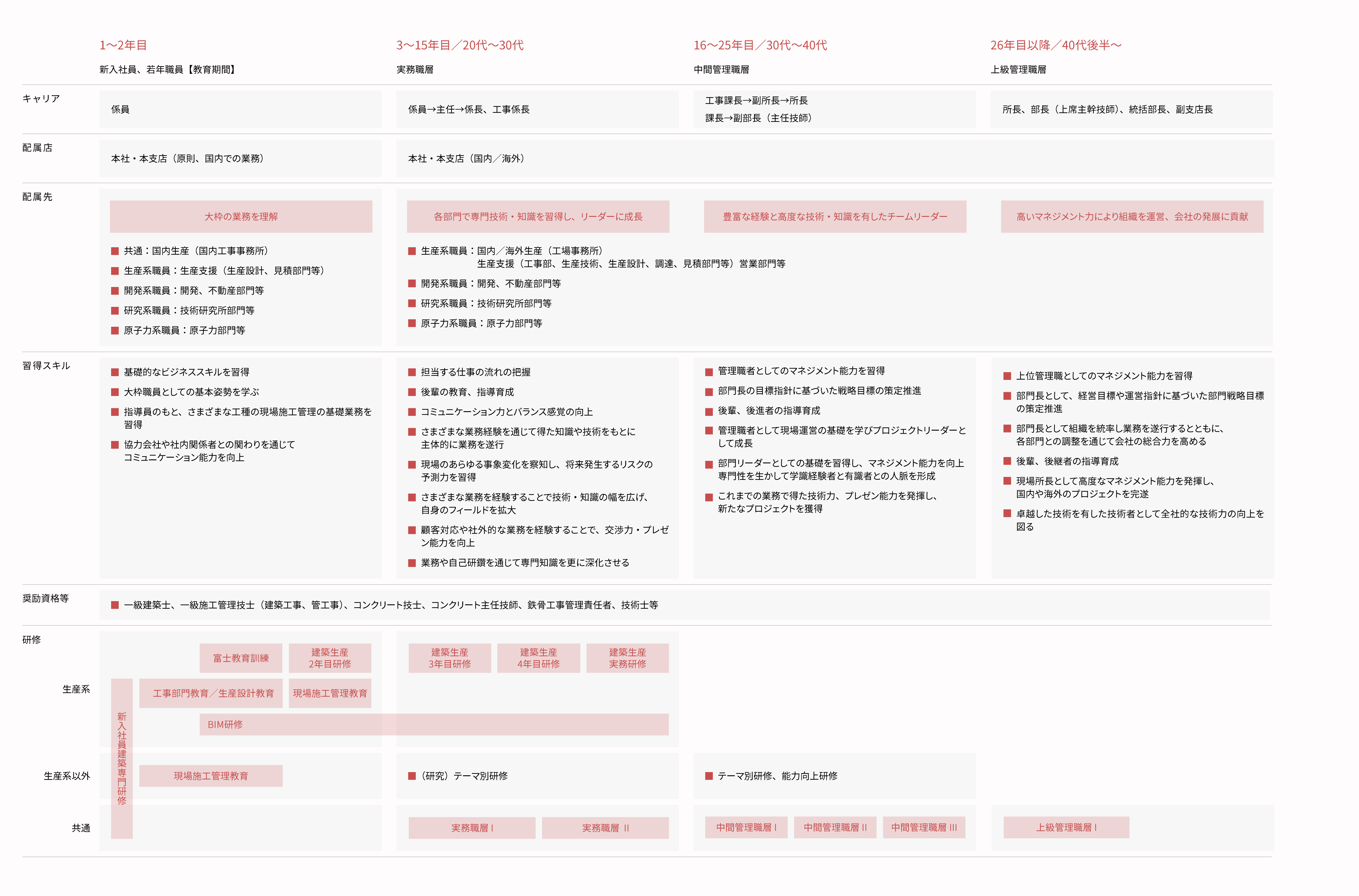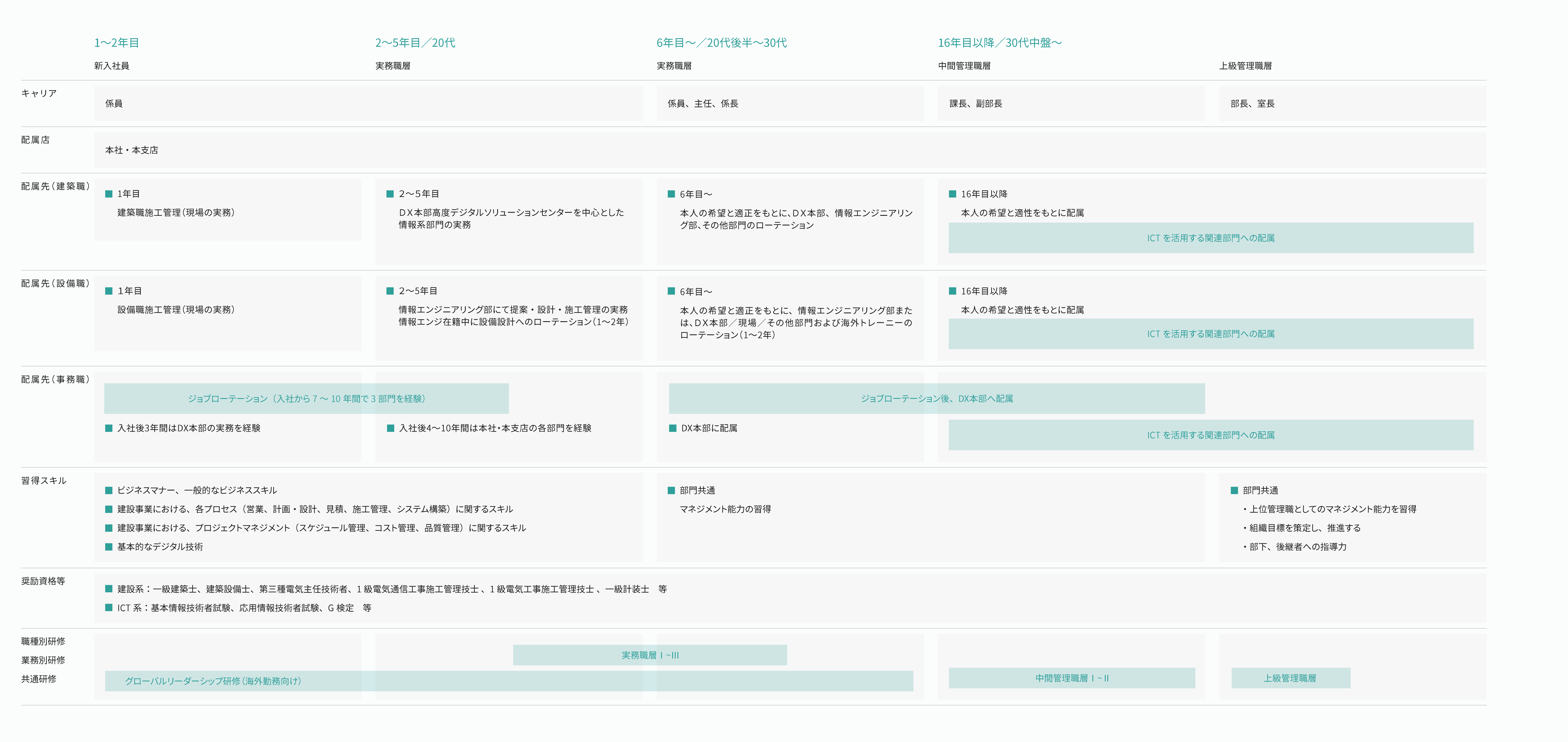 「全国型職員」「拠点型職員」、いずれにおいても大林組における基幹業務を担当することに変わりはありません。