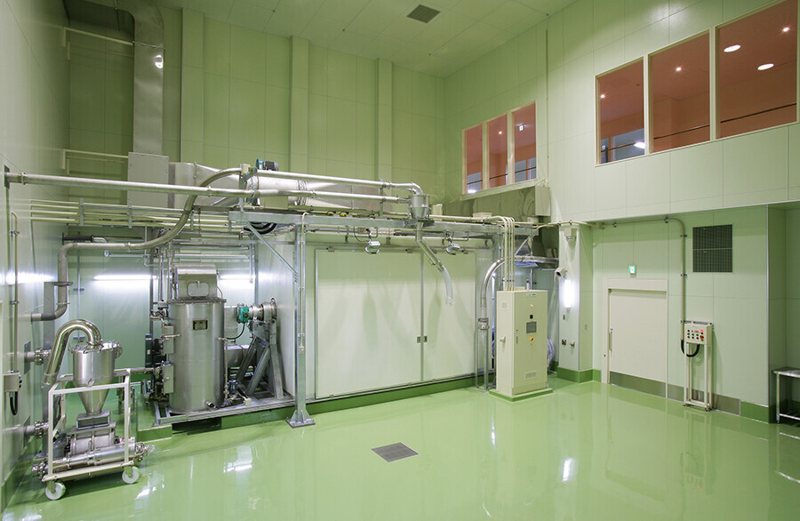 原料貯蔵、供給装置、充填(てん)包装設備、ピロー搬送設備、自動倉庫設備の計画と施工により、機能的な工場を完成させました。 クリーンルームの品質を確保するため、クリーンプロトコルによる工事を計画、実施しています。 お客様工事の生産設備を含めた総合調整業務も行いました。