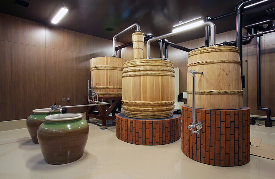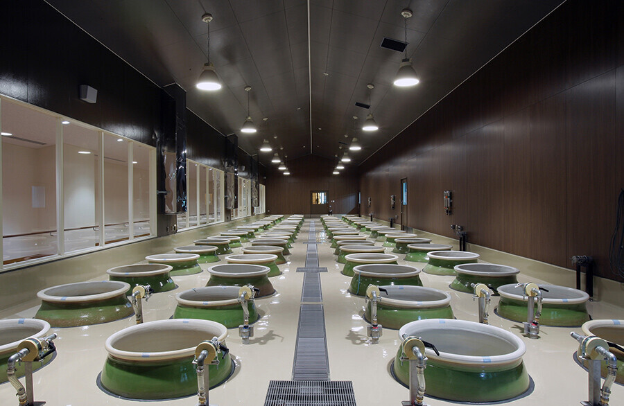 事業計画に基づく生産量設定から生産設備のレイアウト、建屋計画、概算見積についてお客様とフィージビリティスタディを重ね、機能性が高い工場を最適コストで完成させました。近代的な製造ライン(タンク仕込み)と、昔ながらの手作りライン(甕(かめ)仕込み)を、生産設備すべて一括で計画し、施工しています。