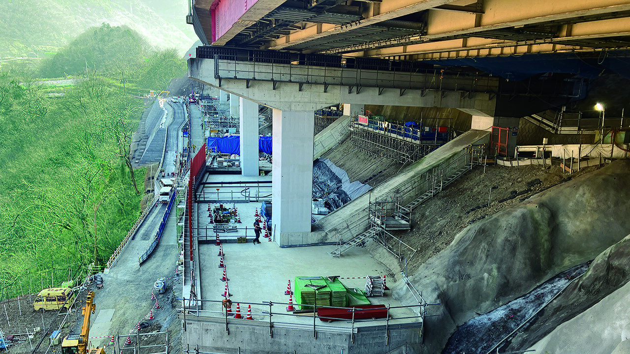 そして、高速道路の真横、真下などでさまざまな工種の工事を進めていかなければならないことから、仮設構台は施工条件に応じて最適だと思われる構造や工法を考え抜いた。進入路を施工条件に応じて3つのセクションに分けて考え、それぞれ並行して作業ができる工法や構造を選定。工程遅延を極力抑える工夫をした。