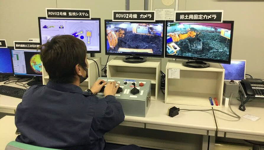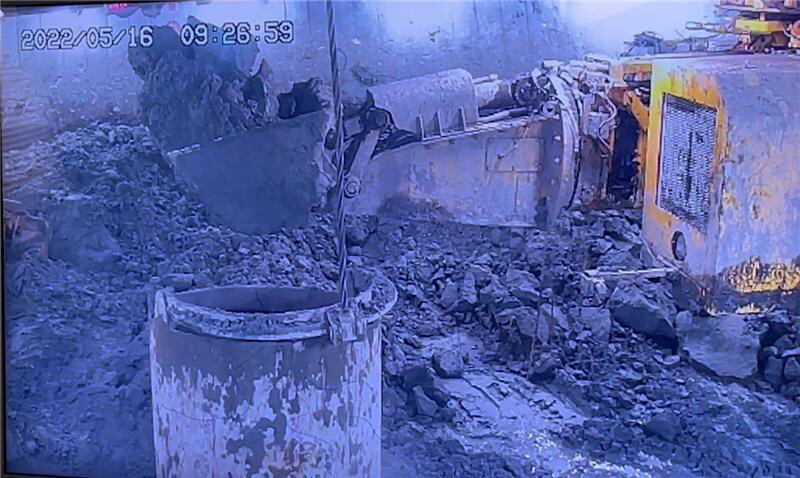 ニューマチックケーソン工法の掘削はオペレーターによる遠隔作業で行われる