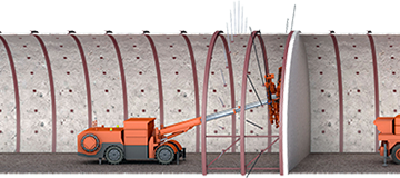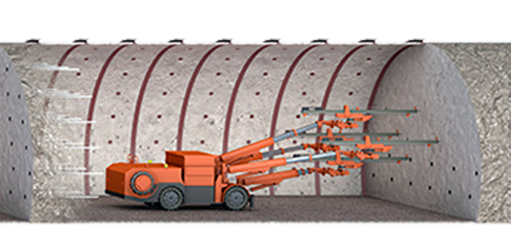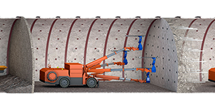 トンネルの発破掘削において、最適な発破パターンを自動作成する『ブラストスキルAI』と『フルオートコンピュータジャンボ』を組み合わせることにより、トンネル切羽での穿孔作業を自動化しました。オペレーター1人がワンボタン操作で穿孔作業が可能となり、省人化できます。さらに、余掘り量を約30%削減できます。