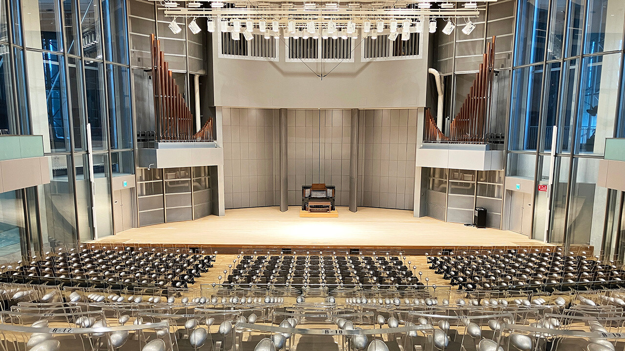 White CUBE Obayashi Concert Hall2022年の福島県沖地震で被災した大林組施工のコンサートホールで、落下した天井を解体の上、復旧工事を行いました。天井は、支持構造部と天井下地材を直接固定して準構造耐震天井を構築しました。「残響時間の長さ」が特徴のホールの災害復旧に、発注者、設計事務所、施工者が一丸となって取り組みました。大林組はネーミングライツを取得し、愛称が「ホワイトキューブ大林組コンサートホール」になりました。