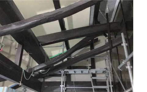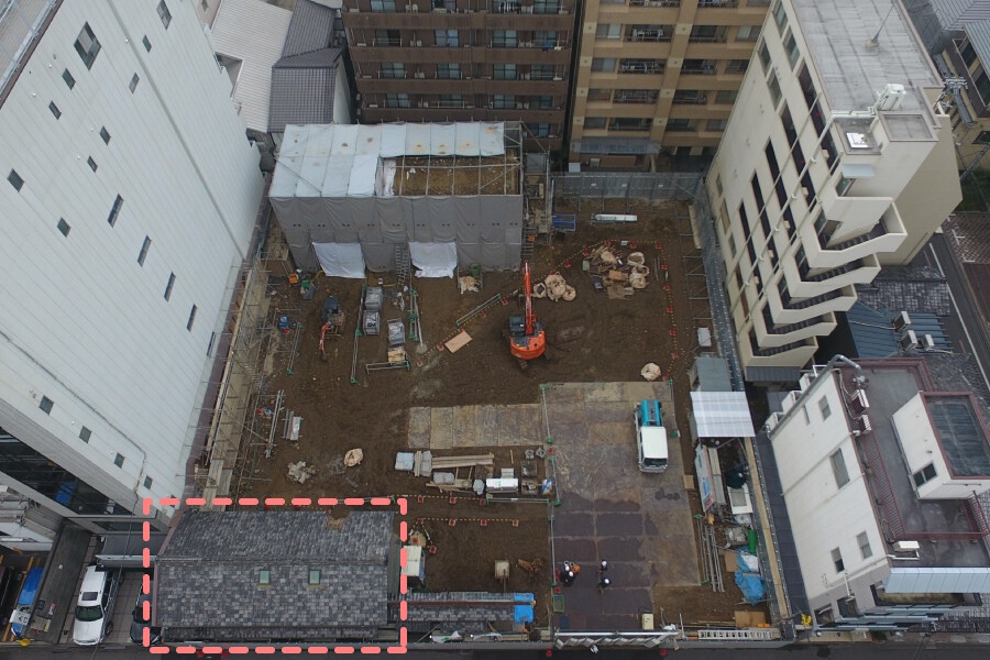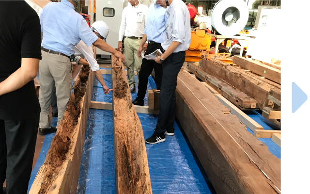 既存建物の調査を行いながら解体を進め、材料選定、埋蔵文化財の調査を経て、建築工事に着手しました。築100年超の京町家をホテルとして機能再生して長く使うために、生かし取り(※2)材の腐朽修復などが必要な箇所を見定め、一つひとつを修復加工して新設建屋に取り込みました。