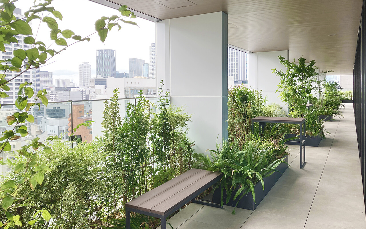 低層部のオフィス階には、緑あふれる屋外スペースを計画し、「グリーンテラス」と名付けました。